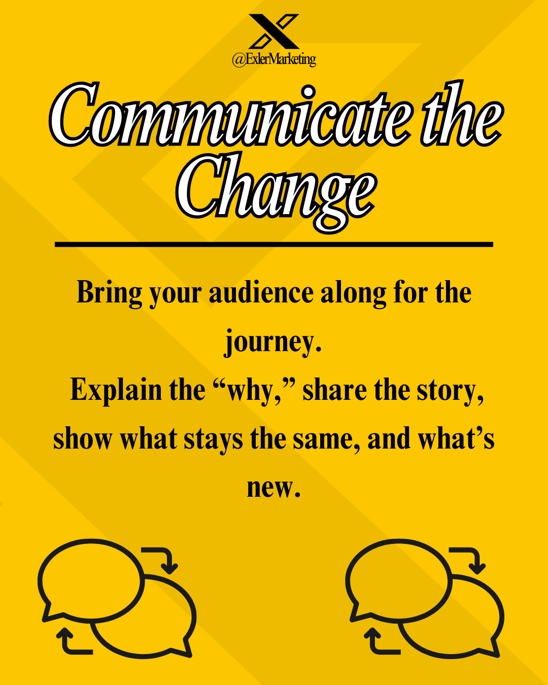 A great example of this in action is our transition from “Andrew Exler Marketing” to “Exler Marketing”. Rather than making a quiet switch, the rebrand was introduced with clarity and purpose, highlighting the evolution of the business while maintaining the trust and recognition already built. By openly sharing the “why” behind the change, we ensured our audience stayed aligned every step of the way. You can see how the rebrand was communicated on our Instagram here.